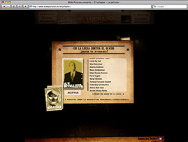 A través de un juego en el que se debe ir peleando con diferentes luchadores, el usuario puede elegir a algunos de sus amigos para luchar contra cada uno de ellos y progresivamente ir montando un cartel de lucha que podrá enviar a sus amigos. Además, desde el mismo site, podrá publicar su opinión o recomendación en su muro de Facebook, generando una viralidad dentro de la propia red. Las diferentes peleas se desarrollan a medida que se navega por el site, garantizando así una total integración de navegación en la web con la experiencia de Facebook. La agencia interactiva OneBigRobot ha desarrollado este proyecto con el objetivo de integrar las redes sociales dentro de la estrategia de marketing interactivo para el estreno de la película. El film, que se estrena el 20 de febrero y está distribuido por Universal Pictures y Wide Pictures, ha ganado dos Globos de Oro y tiene dos nominaciones a los Oscar. www.elluchadorlapelicula.es | |||