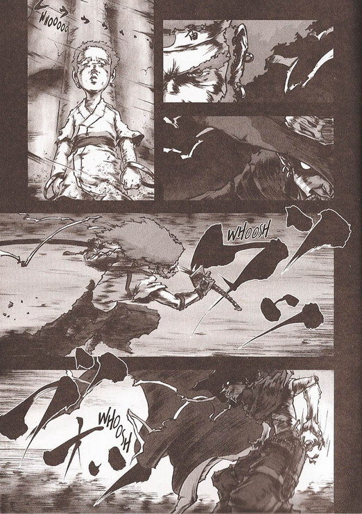 Un samurai negro con peinado a lo afro busca al asesino de su padre. Esta extraña y a la vez contundente imagen encabeza una de las grandes apuestas del cómic nipón para esta temporada en España. Afro Samurai es un manga de culto tanto en Japón como en Estados Unidos que será publicado en España por Panini a través de dos volúmenes, el primero de los cuales verá la luz en octubre, coincidiendo con el Salón del Manga de Barcelona. ![]() |