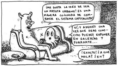 El cómic cuenta de forma humorística un retrato personal y general de la situación del street art en nuestro país.