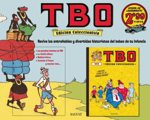 Ahora Editorial Salvat recupera los mejores Almanaques humorísticos, los Números extraordinarios y los Almanaques. Tomo a tomo podrás completar la historia cronológica de lo mejor de TBO desde sus inicios hasta su desaparición en 1983.
