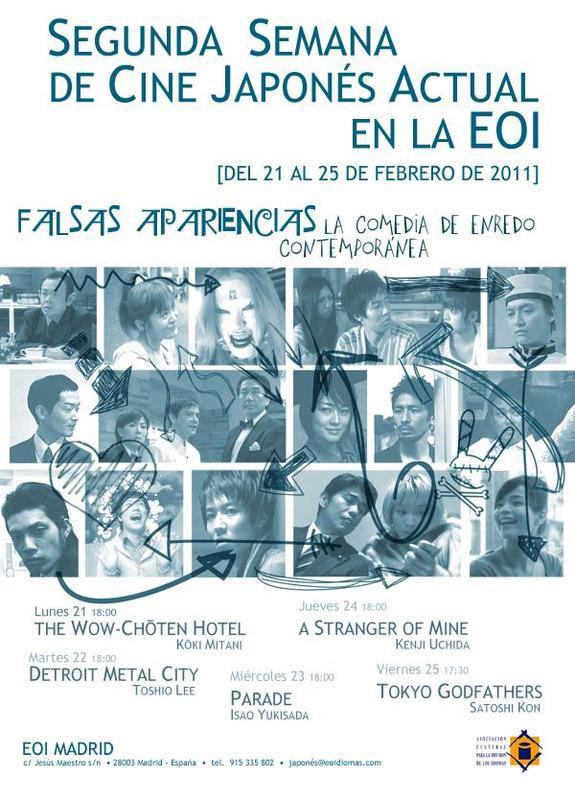 La Escuela Oficial de Idiomas (EOI) de Madrid ofrece en la semana del 21 al 25 de febrero de 2011, la "Segunda Semana de Cine Japonés Actual" y que tiene como subtítulo "Falsas apariencias. La comedia de enredo contemporánea".