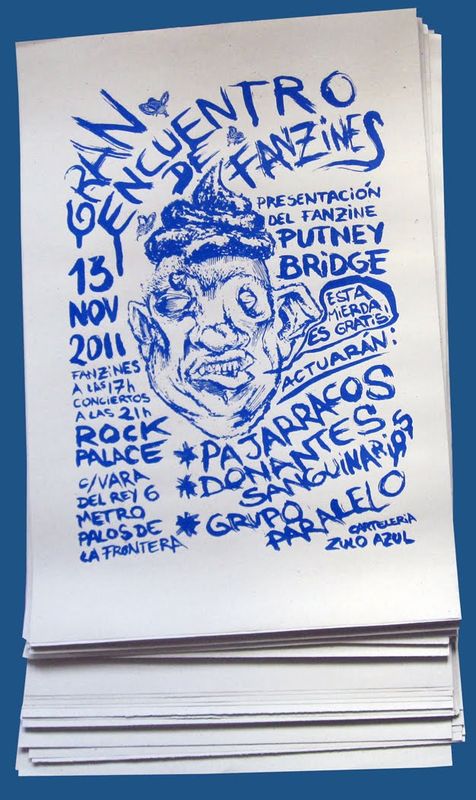 El próximo Domingo 13 de Noviembre se va a celebrar en el Rock Palace (C/ Vara del Rey 6, metro Palos de la frontera, Madrid) un encuentro de fanzines con motivo de la presentación del fanzine Putney Bridge.