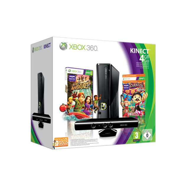 incluye la consola Xbox 360 4GB, el sensor Kinect, “Dance Central 2”, además del divertido título de aventuras para toda la familia “Kinect Adventures”.