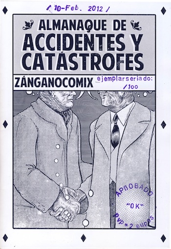 Mientras esperamos una nueva entrega de la revista madre, los Zángano Comix nos presentan un especial, el Almanaque de Accidentes y Catástrofes con colaboradores de lujo: Nestor F., Molg H, Wahab, Alexis Nolla, Tania Lenídez, Laura San Román, Sergi Puyol, Marc Torices, Paco Carrión y Pau Anglada. | |||
