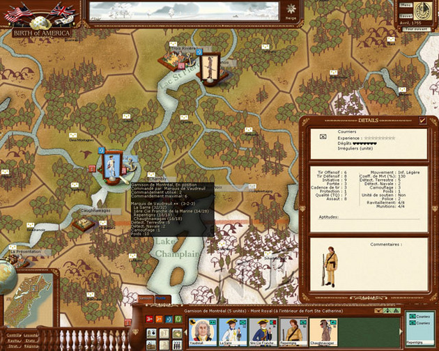 En Birth of America el jugador controlará uno de los principales bandos de estos dos conflictos, intentando conseguir la Victoria militar y política. Es una simulación bastante completa y detallada de las dos guerras más importantes de la América del Norte colonial desde 1755 a 1783 . El juego cubre todo Norte América desde Florida a Quebec y desde Nueva Inglaterra al Mississipi, desde 1755 a 1783. El mapa del juego está dividido en más de 700 provincias, con una gran diversidad de terreno, climas y niveles de civilización. Los jugadores controlan prácticamente todas las acciones militares de su nación. Esto incluye actividades tales como reclutar y destacar sus ejércitos, construir fuertes y depósitos, asedios y bloqueos, ataques de establecimientos y batallas, tanto por tierra como por mar. Las tropas se controlan a nivel de regimiento. Las unidades navales se controlan a nivel de escuadrones navales y flotillas. También podrás gestionar caravanas de suministros, transporte de agua, fuertes y depósitos. Hay una gran diversidad de tipos de tropas incluyendo: infantería ligera, dragones, artillería de asedio, rangers, soldados indios, marines, milicia, barcos de línea, fragatas y flotillas de lagos. Hay más de 90 modelos diferentes de unidades. Todas ellas afectadas por diversas características tales como fuerza ofensiva y defensiva, moral, experiencia, cualidad de la tropa, origen geográfico y tipo de movimiento. Se han incluido más de 150 líderes históricos algunos con habilidades únicas tales como capacidad para realizar emboscadas o movimiento acelerado en ciertos entornos. Los aspectos políticos del conflicto (especialmente durante la Guerra de la Independencia) se han tenido en cuenta, afectando a los reclutamientos de la milicia, a las lealtades y al camino final hacia la victoria. CARACTERISTICAS Creado por Philippe Thibaut, autor de Europa Universalis. El mapa más grande de Norte América en el siglo XVIII jamás creado en un juego Más de 90 modelos de unidades de la época fielmente reproducidos Simple e intuitivo Más de 150 líderes históricos con habilidades únicas 11 escenarios y 3 grandes campañas Cuidada inteligencia artificial Opción de jugar por correo electrónico PC CD-ROM Traducido al Castellano Más Información, pantallas e imágenes: www.birth-of-america.com www.friendware.es Foro en Castellano del juego: http://www.ageod.com/forums/forumdisplay.php?f=36 | |||